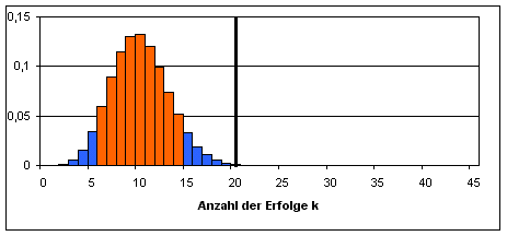 Intervall sind mit dem Stichprobenergebnis X=20 verträglich.