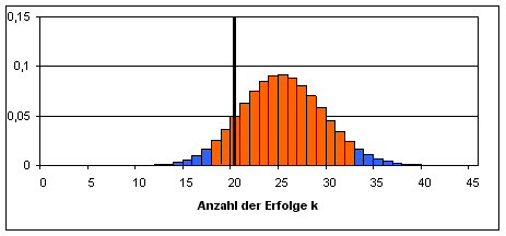 Intervall sind mit dem Stichprobenergebnis X=20 verträglich.